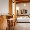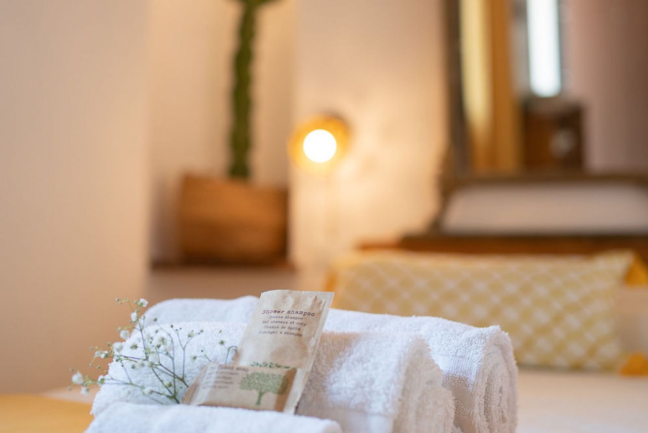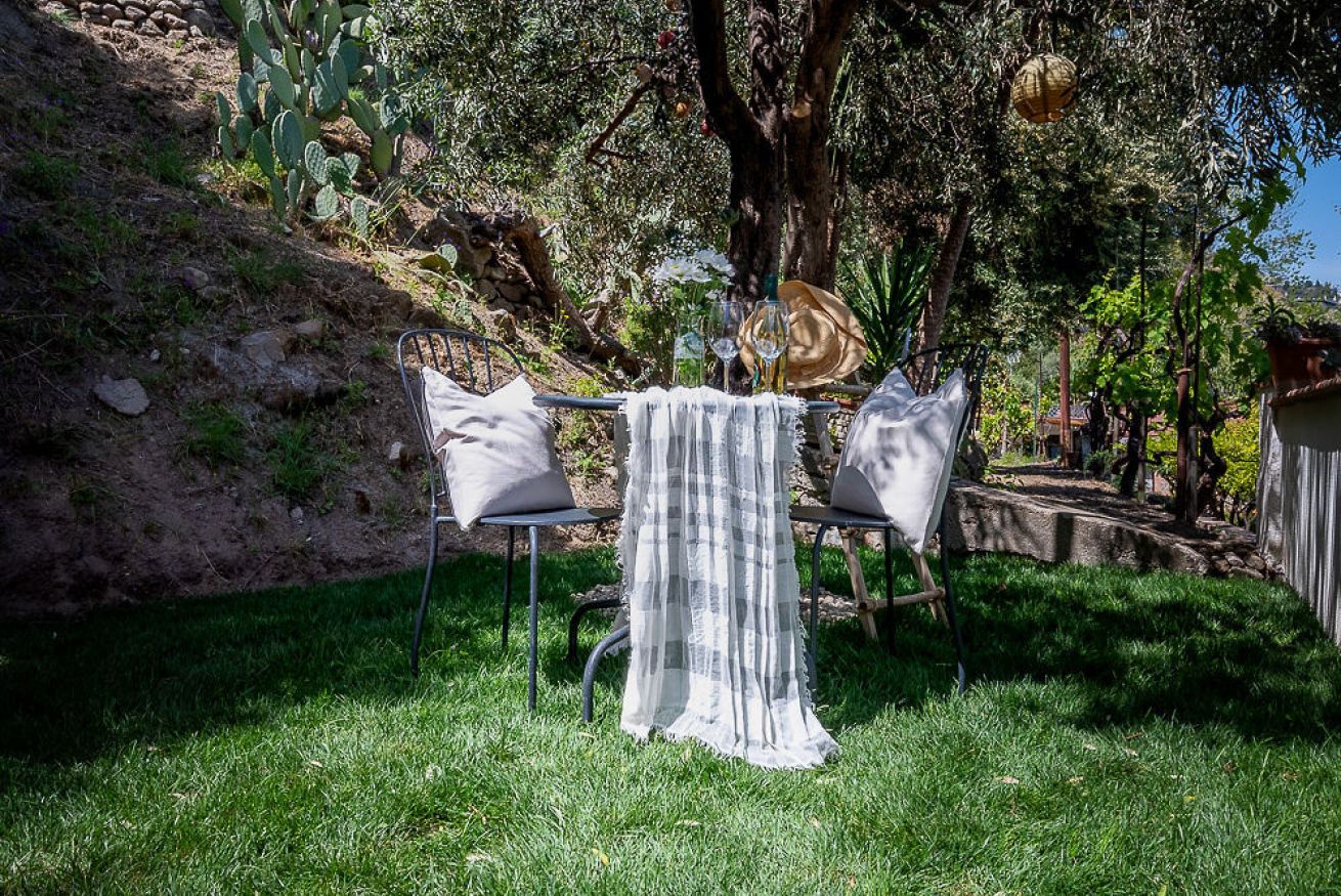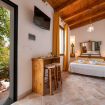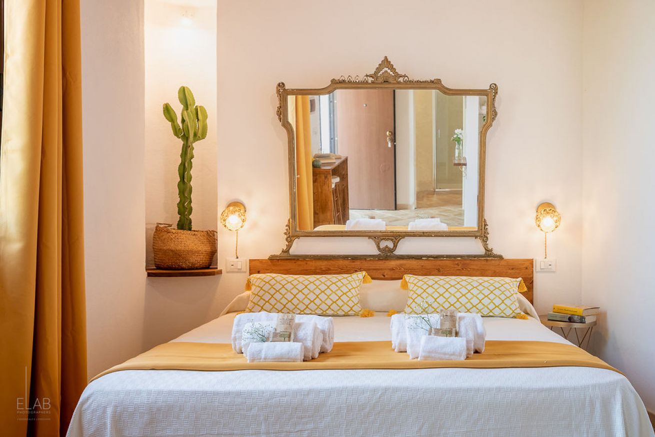 Monolocale con letto matrimoniale, angolo cottura e giardino privato.